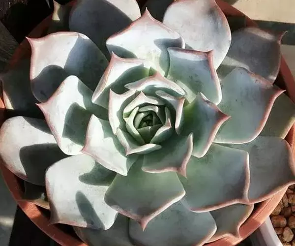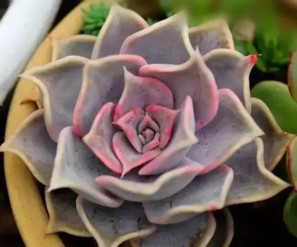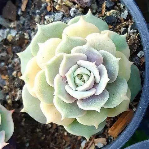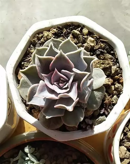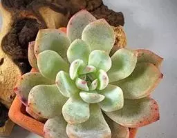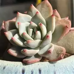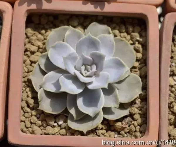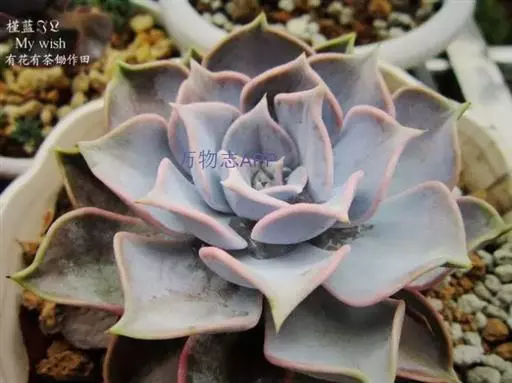 景天科拟石莲花属多肉植物,原产于墨西哥,株幅11-17厘米。叶片肉质,呈浅粉色或藕荷色,叶顶端有小尖,先端叶缘弯折,叶面中部内凹。浇水见干见湿。因叶片带粉,所以浇水时应避免叶片接触水,以免影响美观。如叶心积水,炎热潮湿时易导致腐烂,暴晒则易留疤痕。