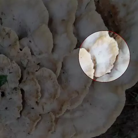 呈莲座状紧密排列,倒卵形至铲形,先端钝,有小短尖,长5-6厘米,最宽处2.5-3.7厘米,基部宽1-1.2厘米,表皮呈偏棕的暗绿色,被淡紫色至浅粉色的蜡质霜粉,叶缘透明。