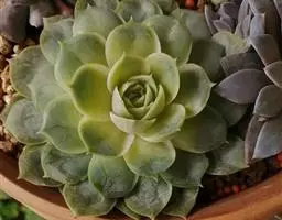 大和锦是景天科拟石莲花属的多肉植物。肉质叶排成紧密的莲座状,广卵形至散三角卵形,背面突起呈龙骨状,…
