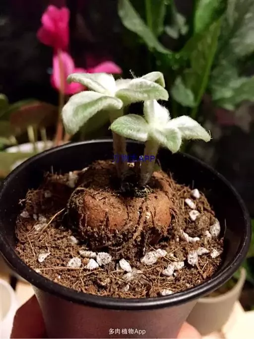 真叶长出4枚时可第一次假植。假植后立即浇水,不用让盆土干燥。15~20天后施肥,有条件者可用花宝2号1000倍稀释液,也可用多元素复合肥或有机肥浸出液,2周1次即可。必须注意的是包保证土壤和空气的湿度。 块茎生长至1厘米左右时,单株移入2.5寸盆,此时改用花宝5号1500或2000倍稀释液,亦可用土办法追施液肥,15~20天1次。还是必须保证湿度。约经1年的生长,块茎基本上能发育到3厘米见方,定植于3寸盆。再改用花宝2号,1500~2000倍稀释液或继续用土法追肥,20~30天1次。如此,2年即可见花。现蕾后可用花宝3号追肥或不予施肥,单朵花期3~5日,群体花期月1个月左右。 此外,无菌播种能有效提高成苗率,单由于播种、出瓶、移栽等手续和步骤繁琐,技术含量高,主要用于工业化育苗,家庭多不使用。