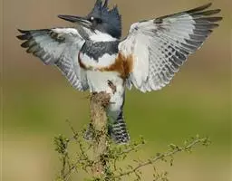 白腹鱼狗 白腹鱼狗在威胁入侵者或当合作伙伴时,会发出清晰的鸣叫声,以示警告。白腹鱼狗生活在不同类型的水生境。湖泊、山涧、海岸、红树林、海湾、沼泽、河流、水库和平静的海面。