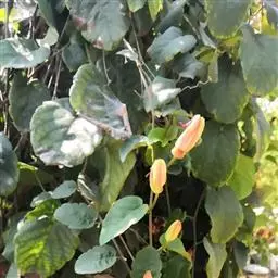 西番莲西番莲科西番莲属多年生常绿攀缘木质藤本植物。茎是圆柱形且有棱角,没有毛;叶子像纸一样薄,…