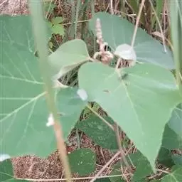 粗状草质藤本,长10-15米,无毛;幼茎四棱形,常具窄翅。叶膜质,宽卵形至近圆形,长7-13厘米,宽5-15厘米,先端急尖,基部圆形,全缘,无毛,侧脉8-12对,网脉疏散,明显可见;叶柄长3-5厘米,具2-3对杯状腺体;托叶大形,长2-4厘米,卵状披针形,顶端急尖,边缘具细齿。