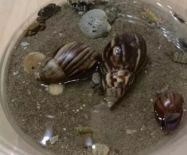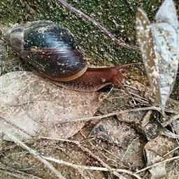 非洲大蜗牛(学名:Achatina Fulica):是中大型的陆栖蜗牛。成体壳长一般为7-8厘米,最大则可长到超过20厘米。夜行性,杂食性,大多是在潮湿环境中活动,喜欢在下雨及夜间出没。平时躲在阴凉的地方,且在壳口上做一层白膜(假口盖),只余一个小孔来呼吸,将螺肉缩入壳内以防脱水,等到环境转好后再出来。