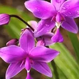 紫花苞舌兰:植株高达1米。假鳞茎卵状圆锥形,具3-5枚叶。叶质地薄,淡绿色,狭长,具折扇状的脉。…