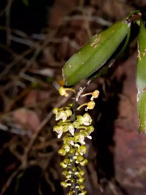 匙唇兰 J.J.Sm.):茎质地稍硬,下垂,通常弧曲状下弯,稍扁圆柱形,不分枝。叶扁平,伸展,…