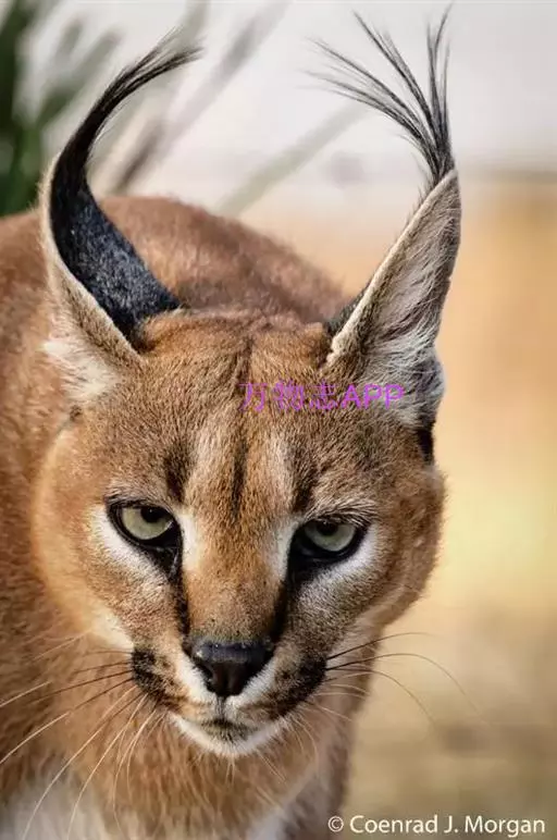 狞猫(拉丁学名:Caracal caracal),体型中等,毛发有许多种颜色,栖息在干燥的旷野,也有其在山区、树丛和沙漠活动的踪迹。
