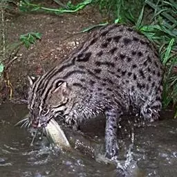 渔猫:是猫科、豹猫属的一种中等体型的食肉动物,体长65-85厘米,体重约为5千克。渔猫的头部较宽,…