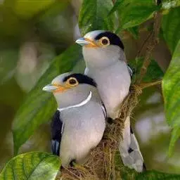 银胸丝冠鸟是雀形目阔嘴鸟科的鸟类,在全世界共分化为10个亚种。体长16-18厘米。嘴宽阔、天蓝色,…