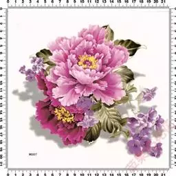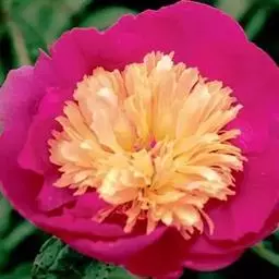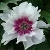 花朵蔷薇型。花蕾圆尖形。花紫红色,有光泽;花径17厘米×9厘米。花瓣多轮质硬,排列整齐,基部具墨紫色斑;部分雄蕊常有瓣化现象;雌蕊多而小,房衣暗紫红色,偶有结实。花梗较长而硬,花朵直上。中开花品种。