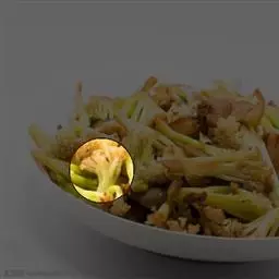 8.油热后,下刚才所有处理过的食材,以及调料包,快速翻炒,根据个人口味再加盐调整咸淡。最后出锅前撒上白芝麻。