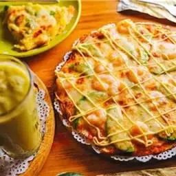 烧开一锅水,水中放一小勺盐,分别将各种蔬菜入锅焯熟,捞出后控干水分,将虾仁和鱿鱼片也一起 焯熟
