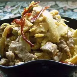 鱼香肉丝,是四川的一道特色名菜,该菜品以泡辣椒、泡姜、大蒜、黄葱、生姜和醋炒制猪里脊肉丝而成,…