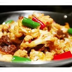 干锅花菜,是湘菜常见的一道菜,以花菜、秀珍菇、蘑菇、青红尖椒为主要食材,…
