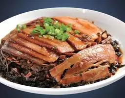 梅菜扣肉,汉族传统名菜,属客家菜 。制作材料有五花肉、梅菜、葱白、姜片等。