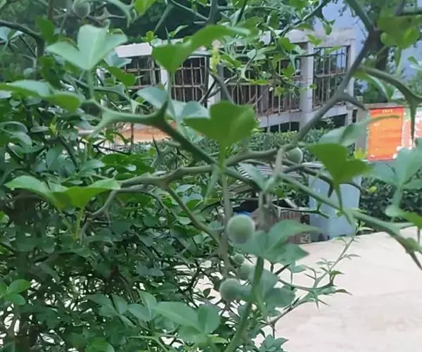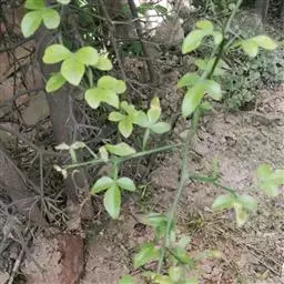 枳(学名:Poncirus trifoliata (L.) Raf)是芸香科,枳属小乔木,高可达5米,树冠伞形或圆头形。枝绿色,叶柄有狭长的翼叶,通常指状3出叶,小叶等长或中间的一片较大,对称或两侧不对称,嫩叶中脉上有细毛,花单朵或成对腋生,花有大、小二型,花瓣白色,匙形,花丝不等长。果近圆球形或梨形,大小差异较大,果顶微凹,有环圈,果皮暗黄色,粗糙,果心充实,果肉含粘腋,微有香橼气味,甚酸且苦,带涩味,有种子;阔卵形,有粘腋,5-6月开花,10-11月结果。