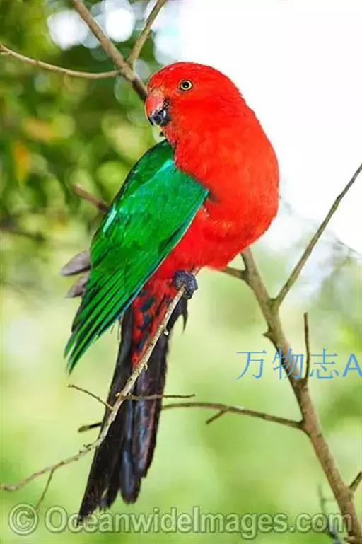 澳洲国王鹦鹉体长41-43厘米,体重275克,寿命25年。有2个亚种,亚种主要差异在于体型大小,羽色上则几近相同,它们的个性相当友善,羽色非常鲜艳美丽。成鸟雌雄差别显著。