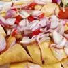 3、取出蒸熟的虾,撒上青红椒粒,浇上烧热的油即可。