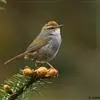 强脚树莺(学名:Horornis fortipes):体长9-13厘米,小型鸟类,是一种暗褐色树莺。具形长的皮黄色眉纹,上体概呈橄榄褐色,两侧淡棕色,下体偏白而染褐黄。与日本树莺相似,但跗跖长一般不及23毫米。虹膜褐色或淡褐色;嘴褐色,上嘴有的黑褐色,下嘴基部黄色或暗肉色;脚肉色或淡棕色。