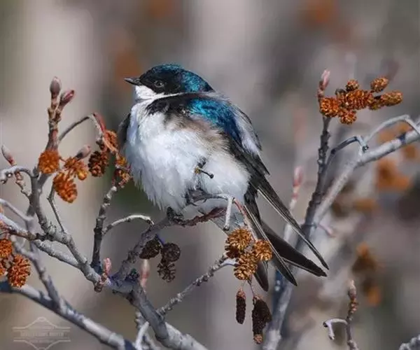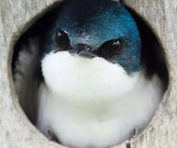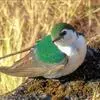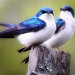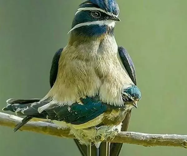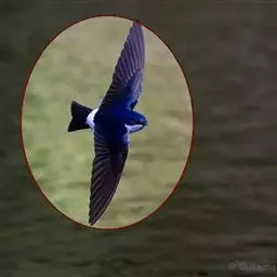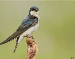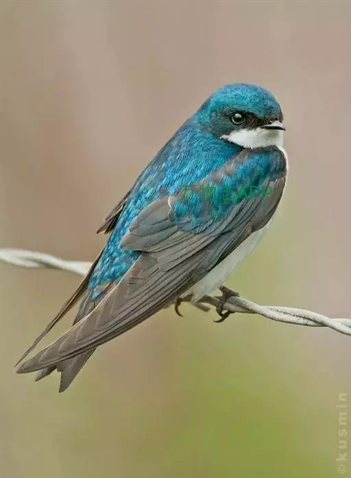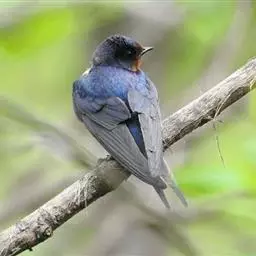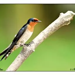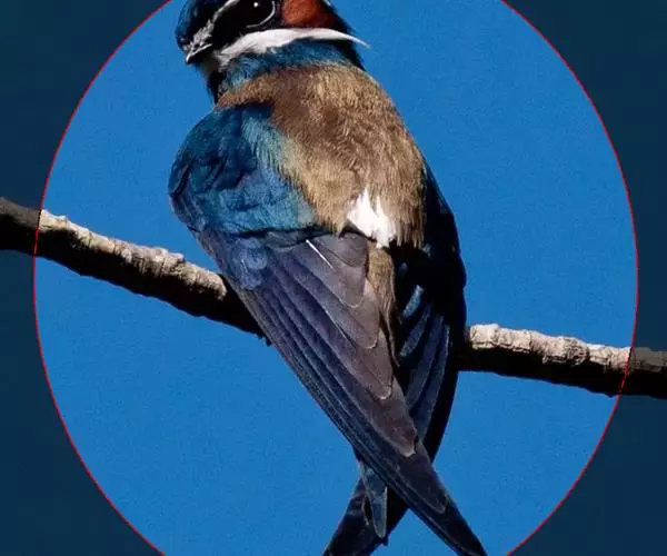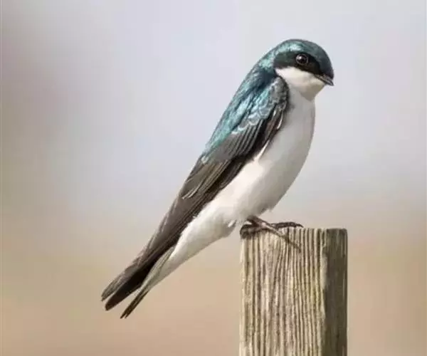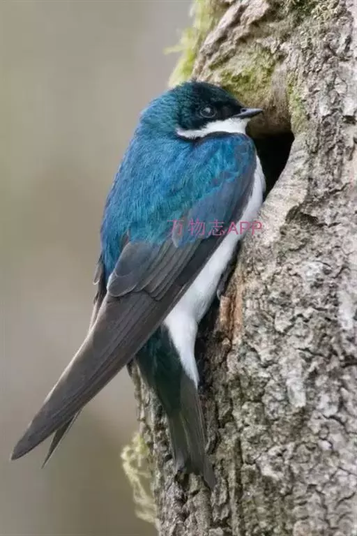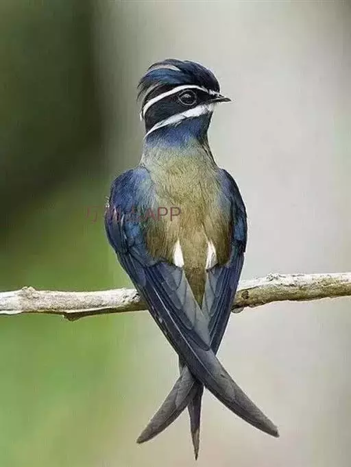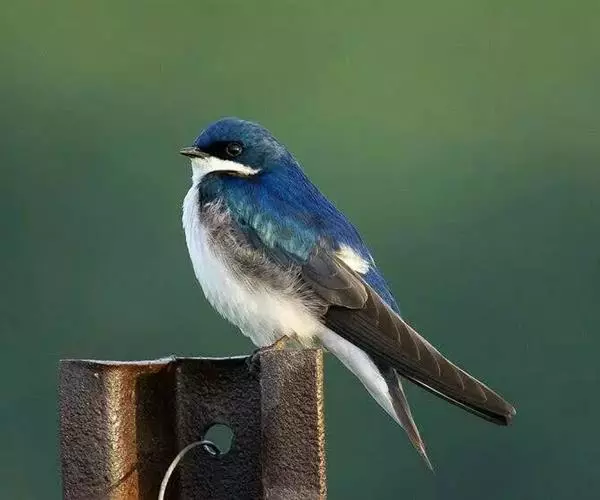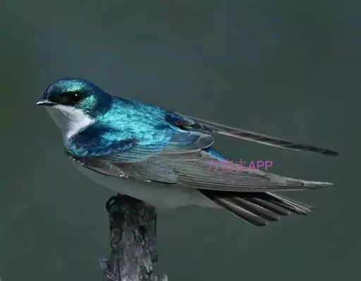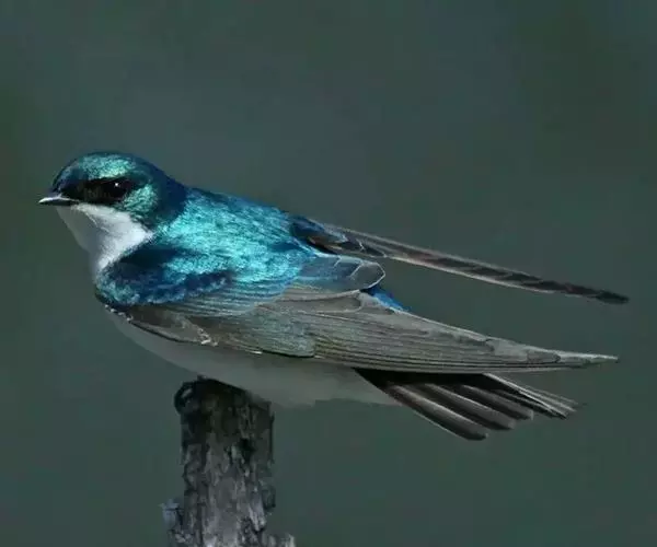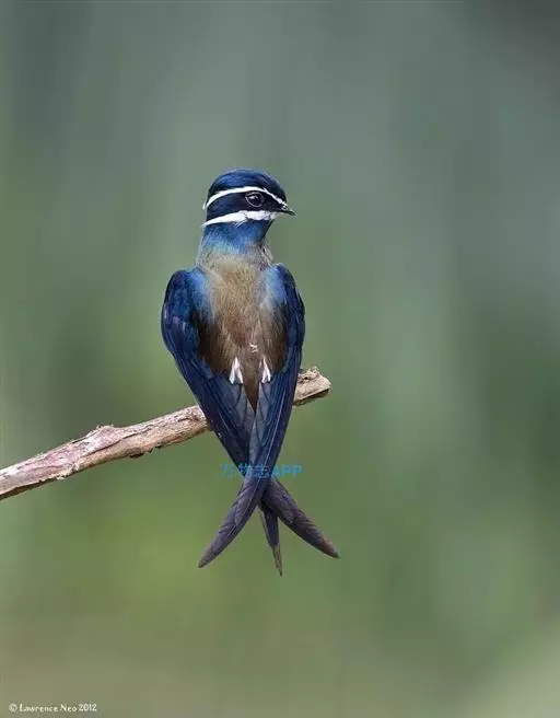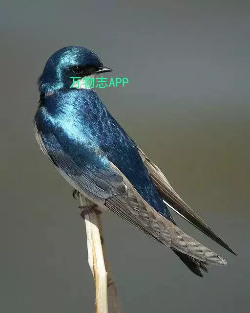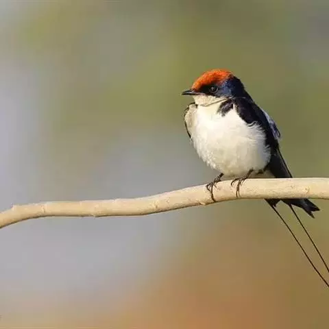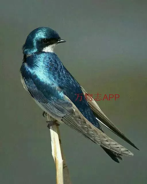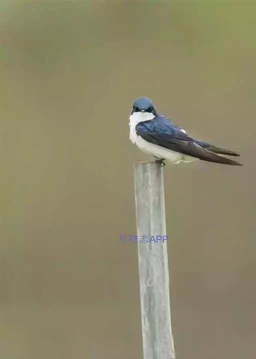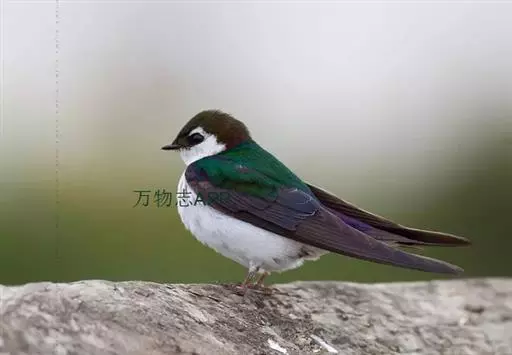 线尾燕,腹部接近纯白色,背部则为深紫色,头部的羽毛是栗色的。