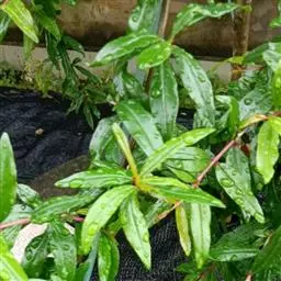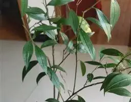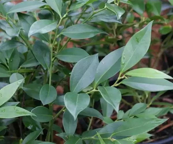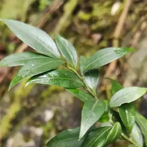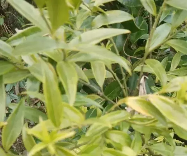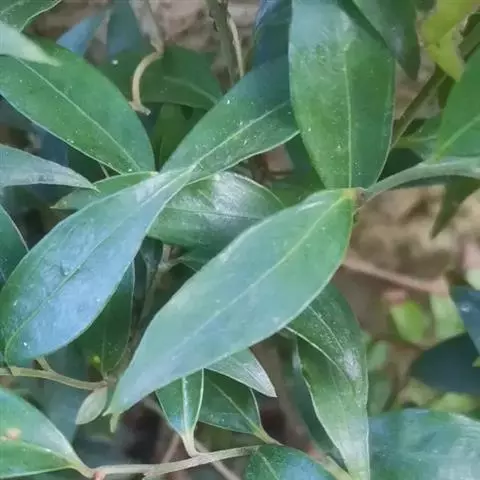 叶阔椭回状卵形、卵形、椭圆状披针形、披针形或狭披针形,较小的长2-3厘米,宽7-12毫米,较狭的长4-7厘米,宽7-14毫米,较大的长6-7厘米,宽2.5-3厘米,变化很大,但常见的为卵形或椭圆状披针形,长3.5-5.5厘米,宽1-2.5厘米。先端急尖或渐尖,兹部急尖或渐狭或圆,一般中部或中部以下较宽,叶面亮绿,叶背淡绿,叶面中脉凸出,无毛,稀被微细毛,大多数中脉近基部有一对互生或对生的侧脉,多少成离基三出脉(四川峨眉山所产植株,干后叶面全部侧脉隆起,且有明显的离基三出脉),叶背中脉稍平或凸出,无毛,全面平滑,侧脉不显;叶柄长3-6毫米。