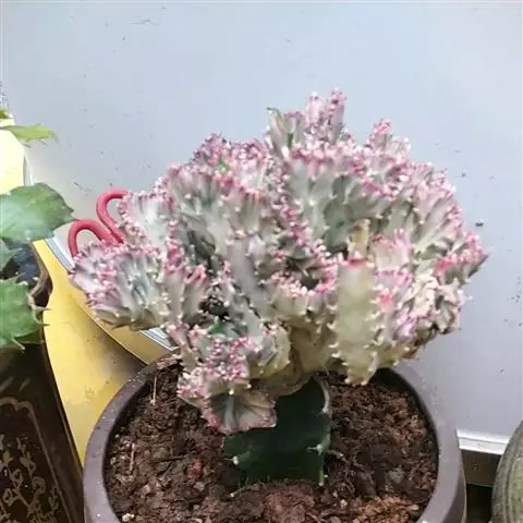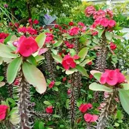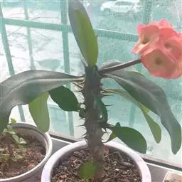 虎刺梅:别称铁海棠,是蔓生灌木植物。茎多分枝,长60-100厘米,直径5-10毫米,具纵棱,密生硬…