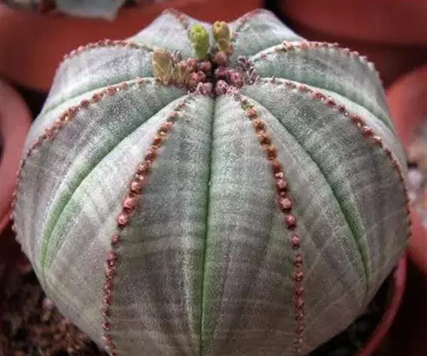 苏铁大戟:俗称“铁甲丸”。多年生的多肉植物,茎干深褐色,样似苏铁的茎干,茎干初期为绿色球型,…
