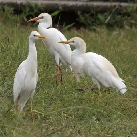 牛背鹭:体较肥胖,喙和颈较短粗。夏羽大都白色;头和颈橙黄色,…