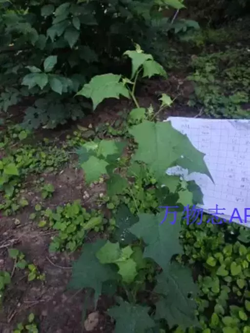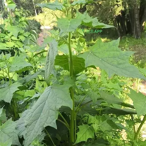2、叶。叶宽卵形至卵状三角形,两面均呈亮绿色,基部圆形、截形或略呈心形,边缘掌状浅裂,轮廓略呈五角形;上部叶较小,多呈三角状戟形。