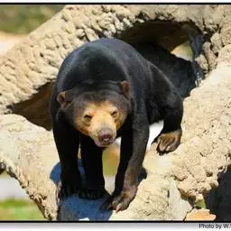 马来熊,是食肉目熊科马来熊属哺乳动物。体胖颈短,眼睛和耳朵小;头部短圆;全身乌黑光滑;鼻唇周为棕黄色,…