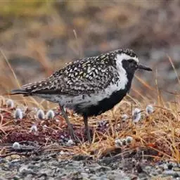 亚成体:如同非繁殖期的成鸟,上体的羽缘多黄色,形成闪亮的鳞片状斑纹。