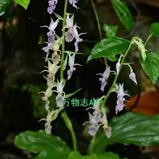 无距虾脊兰:假鳞茎近圆锥形,粗约1厘米,具3-4枚鞘和2-3枚叶。叶在花期尚未完全展开,…