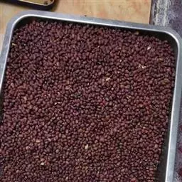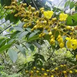 东京油楠 果熟时由青色转黄色以至黑褐色,种子应在果荚开裂前及时用钩刀带荚果采下。采下的果荚可置日光下晒两三天,使之开裂,或摊放于室内,任其晾干后自行开裂。开裂后敲打出种子,种子需晒干,含水率宜控制在12%以下。