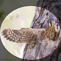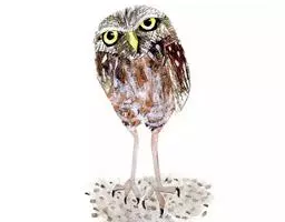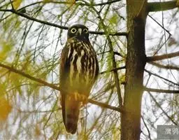 鸺鶹,全长145-170毫米,羽毛棕褐色,有横斑,尾巴黑褐色,腿部白色,爪子比较锋利。外形像鸱鸺,俗称小猫头鹰,但头上没有角状的羽毛。喜欢捕食老鼠、兔子等,对农业有益,为夜行性动物,少数时间白天也活动。属国家二级保护动物。