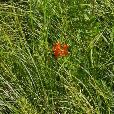 兰州百合花:花为总状花序。花色橙红,下垂。花被6片,广披针形,内面中部有多数粒状突起,排列成内外两层,互相错开。外层三片宽1.6-1.8厘米,长约6厘米,内层三片宽2.2-2.4厘米,长约18厘米。花开放后向外反卷。