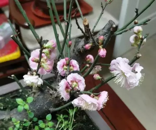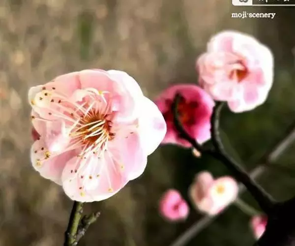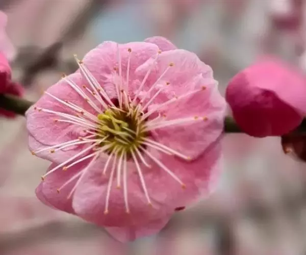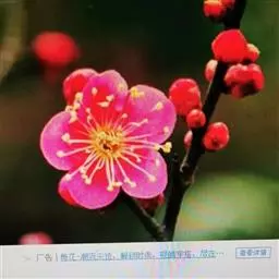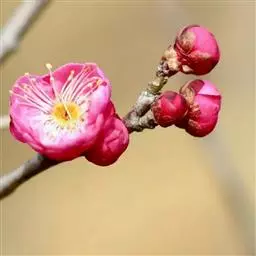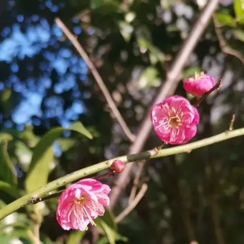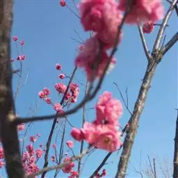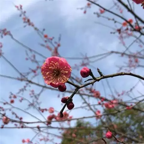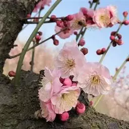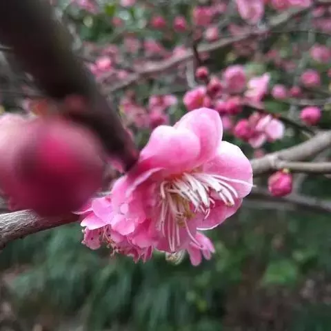 宫粉梅,属梅花品系中真梅系直枝梅类宫粉型,其花复瓣至重瓣,呈或深或浅的红色。宫粉梅是梅花栽培类型中品种最为丰富的个类型,其中有很多花果兼用之梅品。