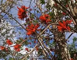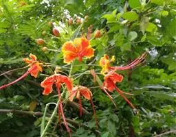 洋金凤 Sw.),豆科小凤花属灌木状或小乔木植物,枝无毛,绿或粉绿色;二回羽状复叶;总状花序伞房状,…
