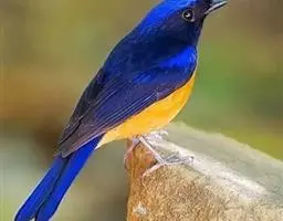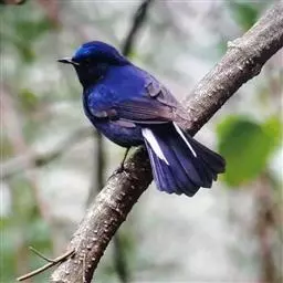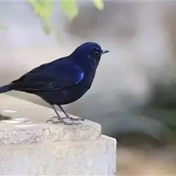 蓝大翅鸲是鹟科、大翅鸲属小型鸟类,体长19-21厘米。两翅尖长。雄鸟通体鲜紫蓝色具金属光泽。…