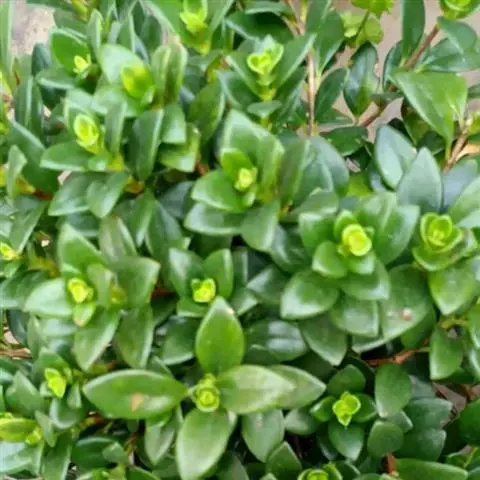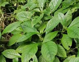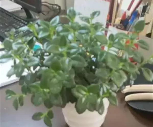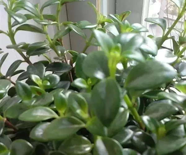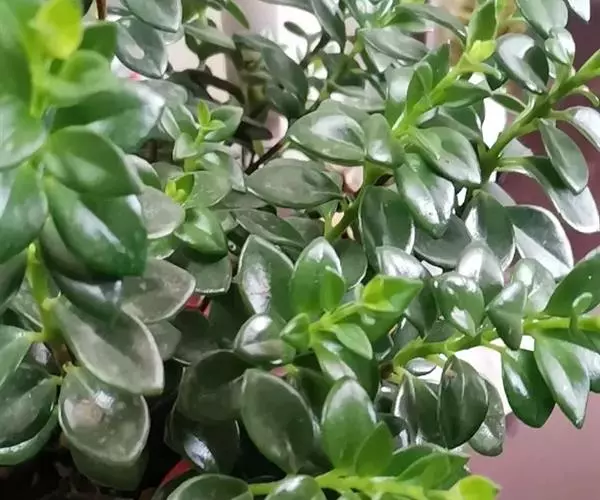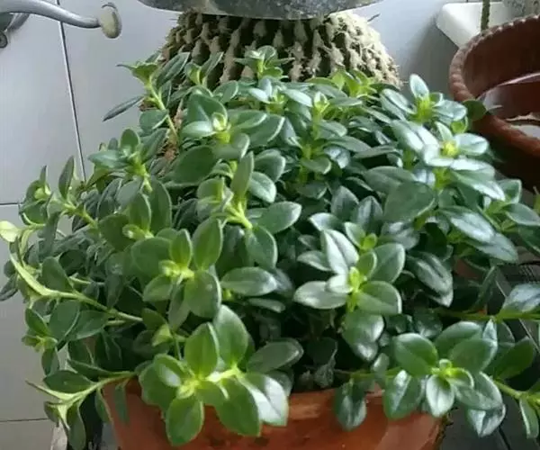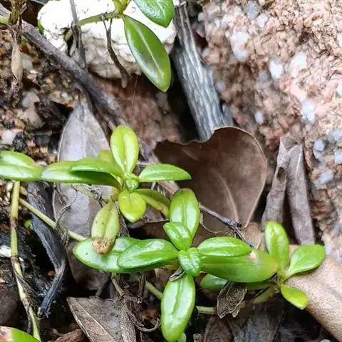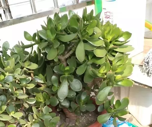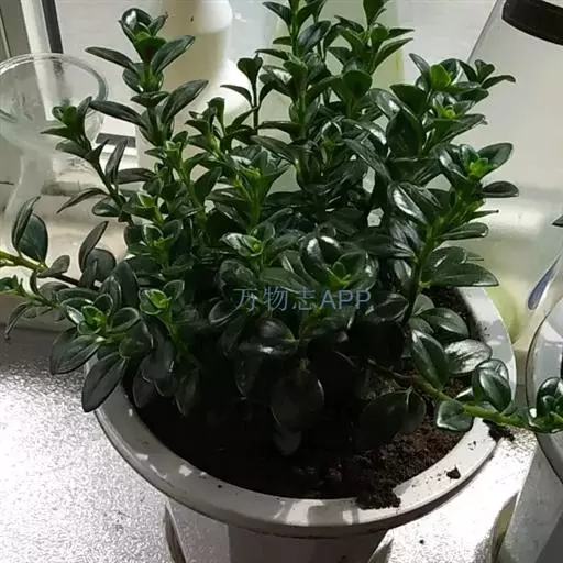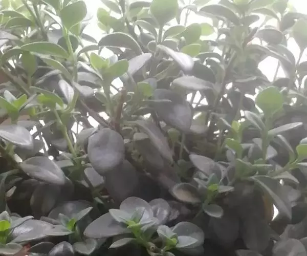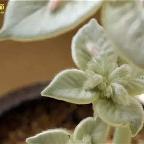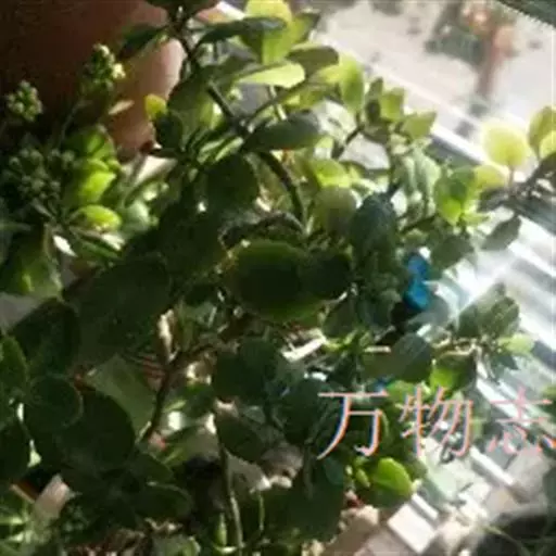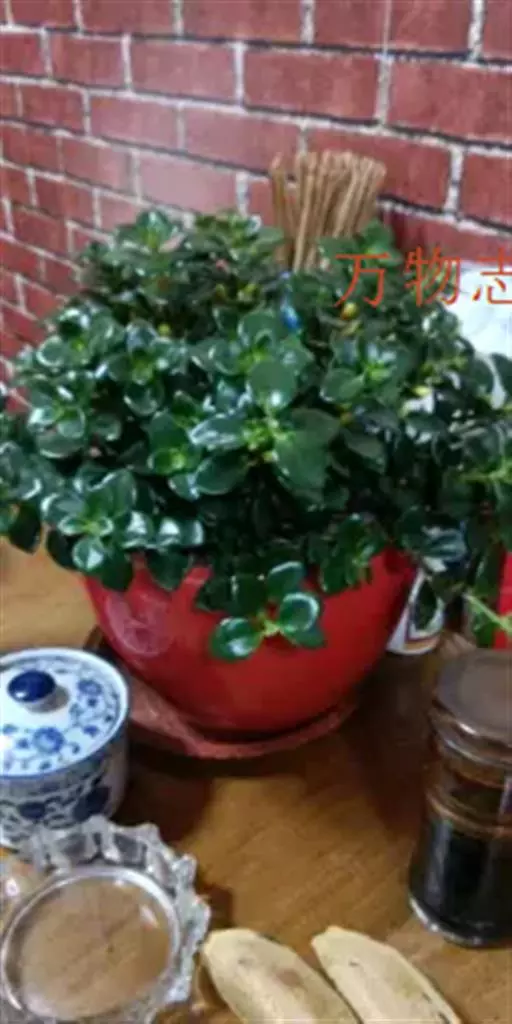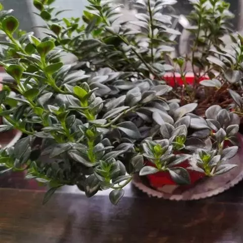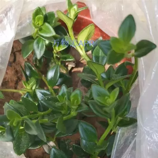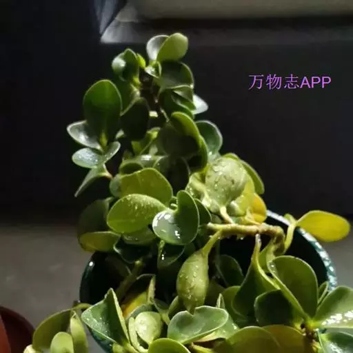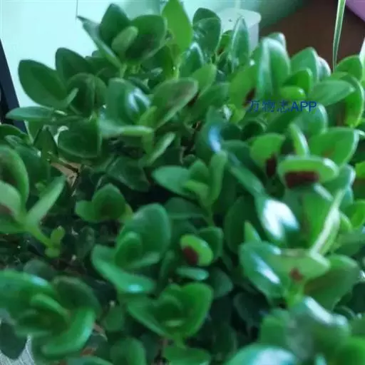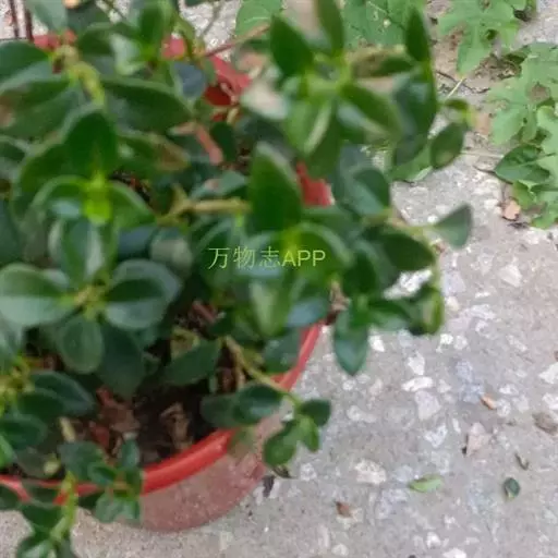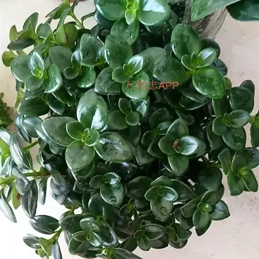 茎斜升,长20~40㎝,嫩茎绿色,老茎红褐色; 单叶,对生,卵形,长约3~4㎝,先端尖,肉质,叶面浓绿色,背面靠主脉处红色.