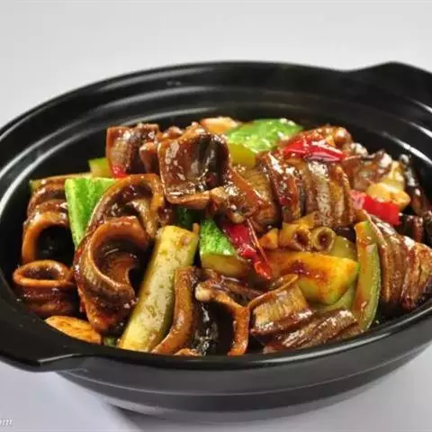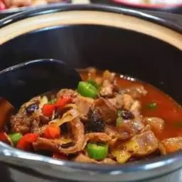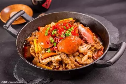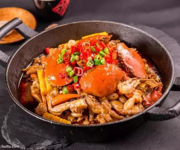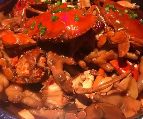 肉蟹煲又名缅甸肉蟹、缅甸黑蟹、缅甸石蟹,是一道由肉蟹、鸡爪、辣酱做成的美食。肉蟹原产于缅甸、孟加拉一带海中,味道鲜、嫩,蟹肉味浓香。可与生姜搭配来降低寒气。
