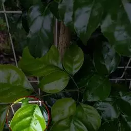 2、阴香。常绿乔木,高达20m。小枝赤褐色,无毛。叶近于对生或散生,革质,卵形或长椭圆形,长6-10cm,宽2-4cm,先端短渐尖,基部楔形至近圆形,全缘;上面绿色,有光泽,下面粉绿色,两面均无毛,具离基3出脉,脉腋内无隆起的腺体;叶柄长8-12mm。圆锥花序顶生或腋生;花小,绿白色,花被6,基部略合生,长4-5mm,两面均被柔毛;能育雄蕊9,排成3轮,外面2轮花药内向,第3轮花药外向,花药均为卵形,4室,瓣裂,花丝短,最内尚有1轮退化雄蕊;雌蕊1,子房上位,1室,1胚珠,花柱细,柱头小。浆果核果状,卵形,长不及1cm,直径约5mm,基部具肥厚杯状的宿存花被,其先端具6截形短裂片。花期3-4月。果期4-10月。