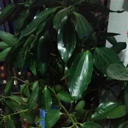 3、细叶香桂,常绿高大乔木。树皮灰色,小枝密生绢状毛。叶在新枝对生,在老枝互生,革质,卵状椭圆形至披针形,长4-14cm,宽1-6cm,先端长渐尖,基部楔形,全缘,上面绿色,有光泽,下面密生绢状短柔毛,具离基3出脉,在背面显着隆起。圆锥花序腋生;总花梗和花梗密生白色短柔毛;花淡黄色,花被6裂,基部筒状;雄蕊、雌蕊与前种相似。浆果椭圆形,基部具宿存萼筒,全缘。花期5-6月。果期6-12月。