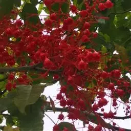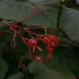 红萼龙吐珠(学名:Clerodendrum speciosum)马鞭草科大青属常绿木质藤本。叶对生,纸质,具柄,卵状椭圆形,全缘,先端渐尖,基部近圆形。聚伞花序腋生或顶生,花冠红色,花萼红色,雌雄蕊细长,突出花冠外。核果。花期春至秋末。
