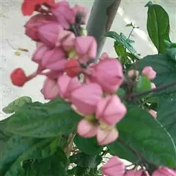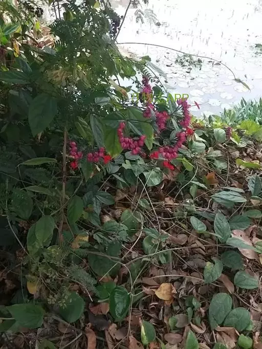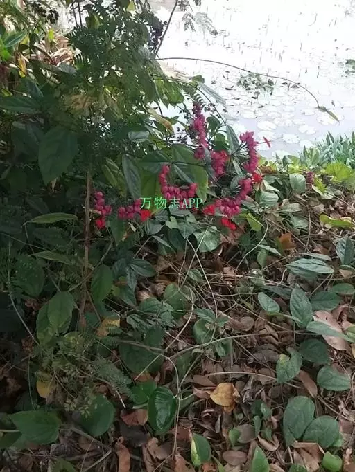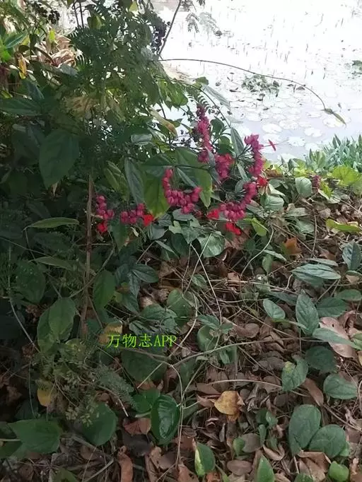 常绿木质藤本。叶对生,纸质,具柄,卵状椭圆形,全缘,先端渐尖,基部近圆形。聚伞花序腋生或顶生,花冠红色,花萼红色,雌雄蕊细长,突出花冠外。核果。花期春至秋末。