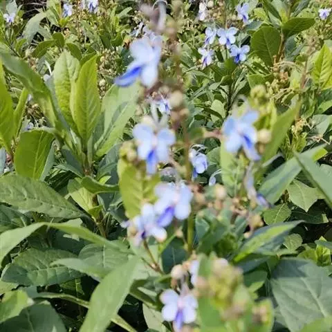 臭茉莉唇是形科大青属植物,臭茉莉体被毛较密,伞房状聚伞花序较密集,萼裂片披针形,花冠白色或淡红色,…