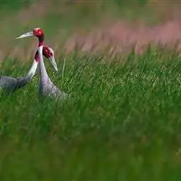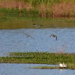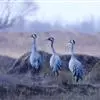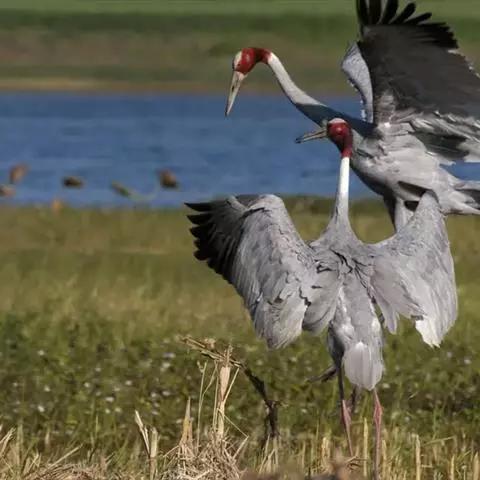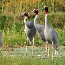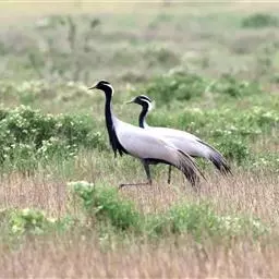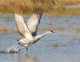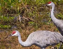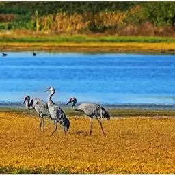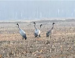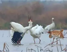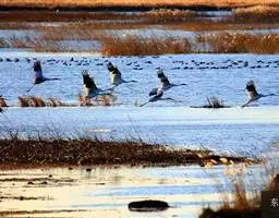 灰鹤 栖息于开阔平原、草地、沼泽、河滩、旷野、湖泊以及农田地带;其中尤为喜欢以富有水边植物的开阔湖泊和沼泽地带。常栖息于沼泽草甸,沼泽中多草丘和水洼地,水生植物有水麦冬、水毛茛和薹草等20多种;在中国黑龙江省林甸县灰鹤栖息在芦苇沼泽,有芦苇、狭叶甜茅、菰、小猩藻等植物;在迁徙途中的停歇地和越冬地,主要栖息在河流、湖泊、水库或海岸附近,常到农田中觅食,回到河漫滩、沼泽地或海滩夜宿,例如,在山西省河津县黄河滩越冬的灰鹤,白天主要在作物地中觅食休息,以花生地中最多,夜间在距河岸1-2千米处四面环水的沙滩或荒草丛生的小岛上过夜,但从未见到灰鹤在耕地内集群过夜。