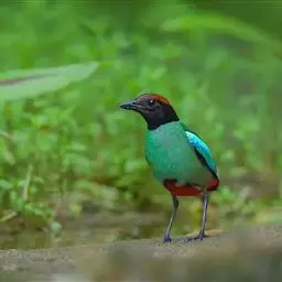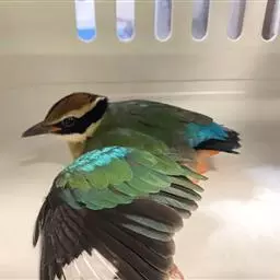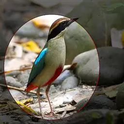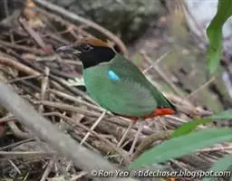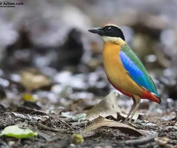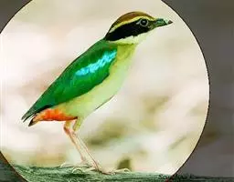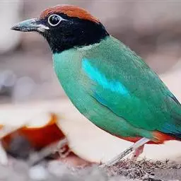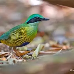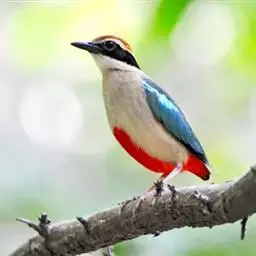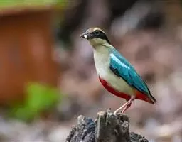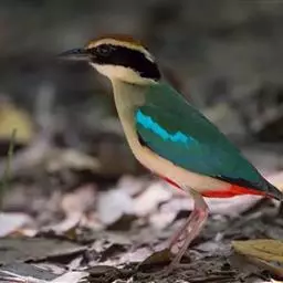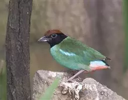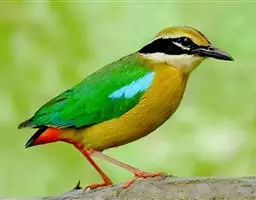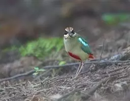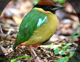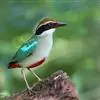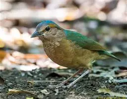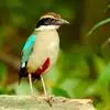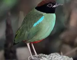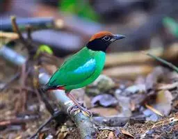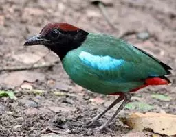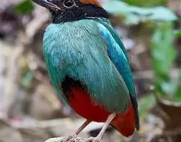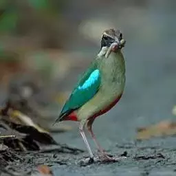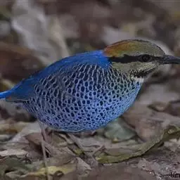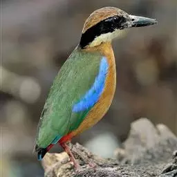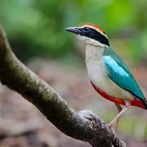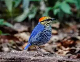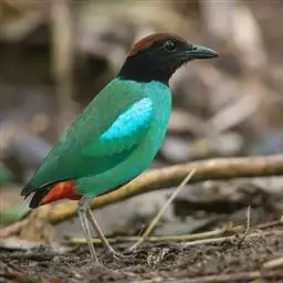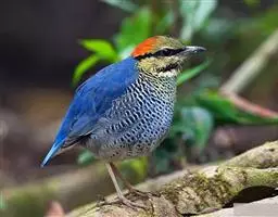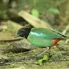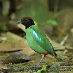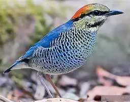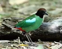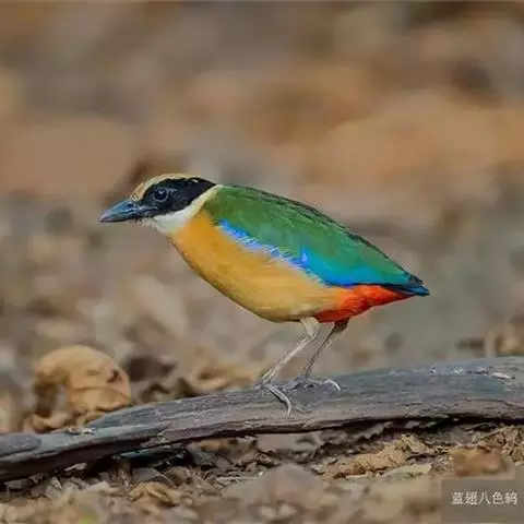 蓝翅八色鸫(学名:Pitta brachyura)是雀形目八色鸫科的鸟类。体长17-20厘米,体重类约48-70克,体型圆胖,尾短,腿长,以身体具有红、绿、蓝、白、黑、黄、褐、栗等鲜艳夺目,丰富艳丽的色彩而得名,是很有观赏价值的鸟类。主要栖息于海拔200 米以下的平坝和丘陵落叶很厚的各种类型的树林中,也见于林缘溪流边的灌丛和小树上,田坝区的榕树和村寨边的小树上,以及竹林等环境。常在森林底层或低植被中找食无脊椎动物。叫声简单哀婉。主要以甲虫、白蚁、鳞翅目、鞘翅目的昆虫和蚯蚓、蜈蚣等小动物为食。分布于中国西南部、东南亚;越冬于马来半岛、苏门答腊及婆罗洲。