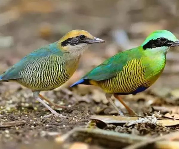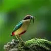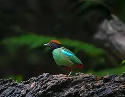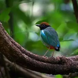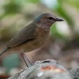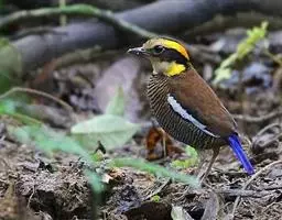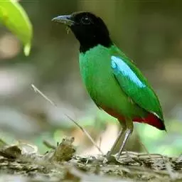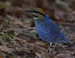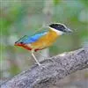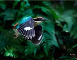 蓝翅八色鸫多见10-20只在树冠下结群静栖,或在相近的树枝上活动。喜低地灌木丛及次生林。在地面跳动似鸫鸟。多在林下荫湿处活动,是该科鸟类中分布最广的一种。在中国属夏候鸟,秋末经沿海一带迁飞至南部热带越冬。鸟鸣声是响亮清晰的笛音“tae-laew、tae-laew”,持续不到1分钟;告警时叫声为粗哑的“skyeew”声。