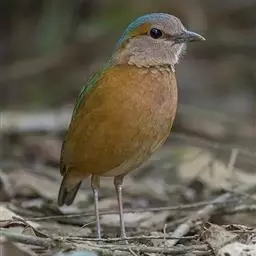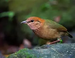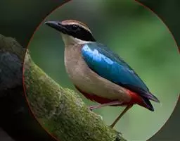 蓝翅八色鸫是一种小型的鸟,嘴强,长而侧扁,颈部短,鸣管内肌两对附着于支气管半环的中部。尾羽很短,腿特长而坚强,表面平滑。