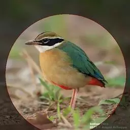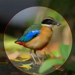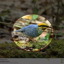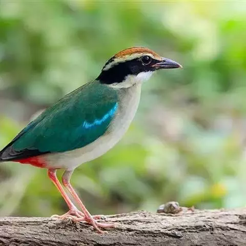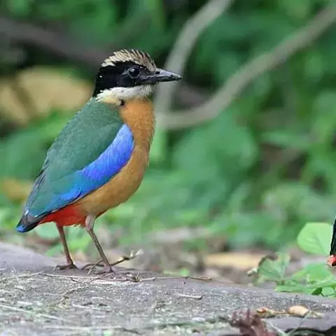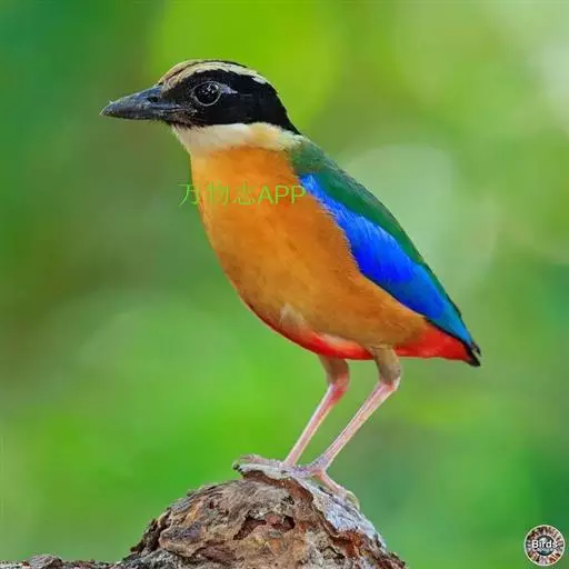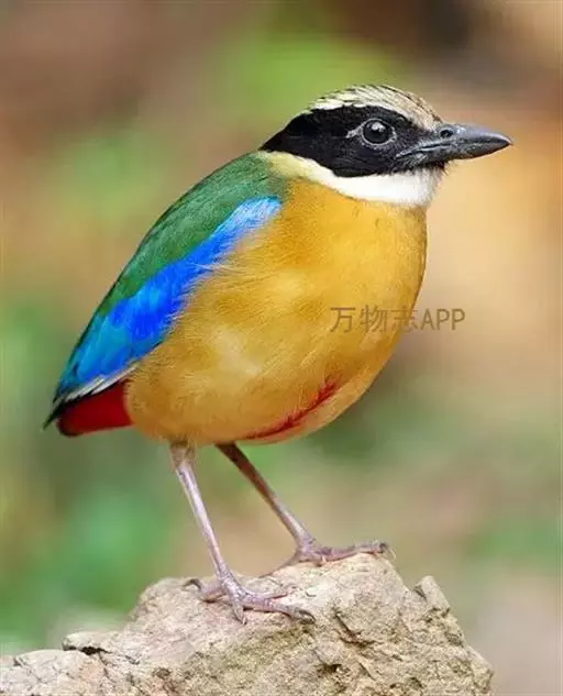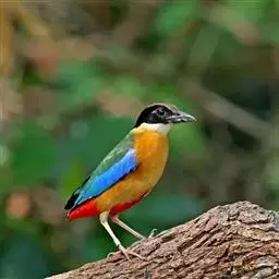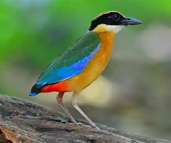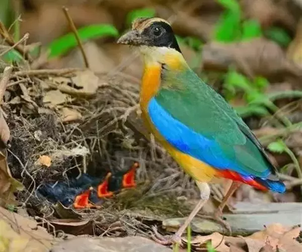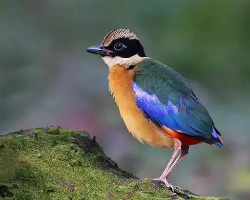 蓝翅八色鸫以身体具有红、绿、蓝、白、黑、黄、褐、栗等鲜艳夺目,丰富艳丽的色彩而得名,是很有观赏价值的鸟类。实际它身上所具有的颜色不止八种色彩,头部前额至枕部为深栗褐色,冠纹黑色,眉纹呈茶黄色,眼先、颊、耳羽和颈侧都是黑色,并与冠纹在后颈处相连,形成领斑状。背部为亮油绿色,翅膀、腰部和尾羽为亮粉蓝色。下体呈淡茶黄色,腹部中央至尾下覆羽都是猩红色。在丛林之中,它身上的这些斑斓的羽色与阳光、绿叶、紫花、白蕊等大自然的色彩融合在一起,因而也成为一种特别的保护色。